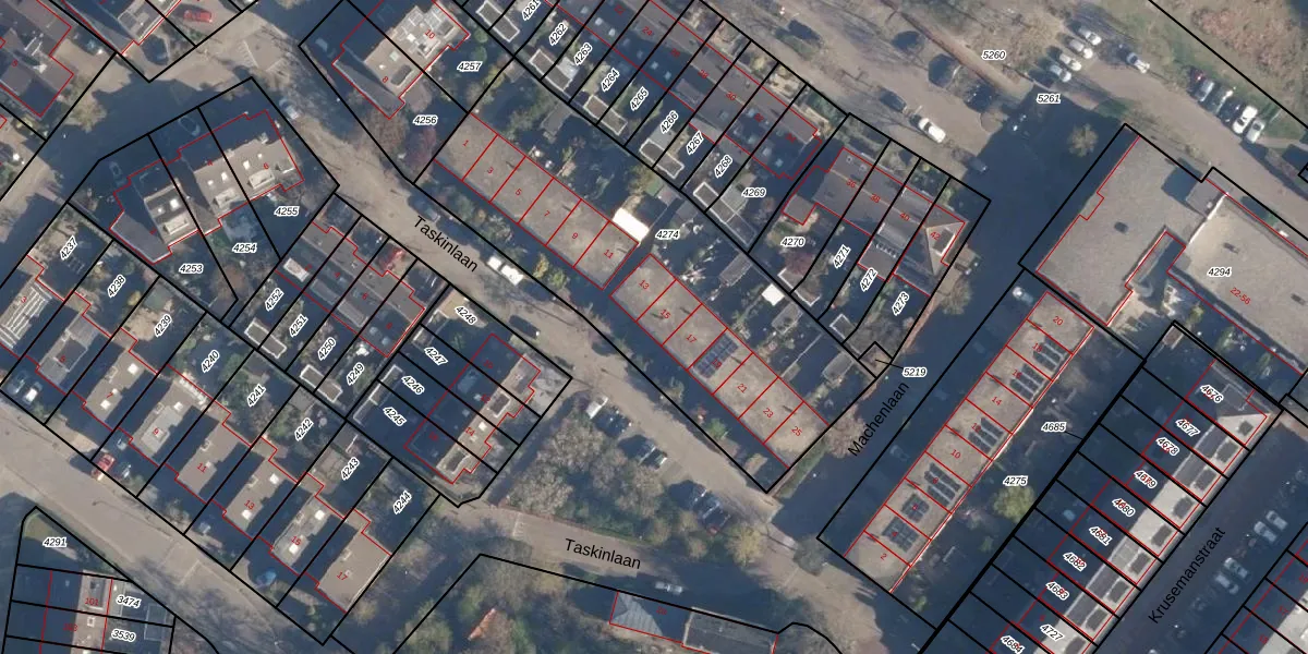Taskinlaan 15 is gelegen op kadastraal perceel WMD01D4274. Deze kadastrale aanduiding is uniek en wordt gebruikt door het Kadaster om eigendomsrechten en andere zakelijke rechten vast te leggen. Het perceel maakt onderdeel uit van de kadastrale gemeente Warmond.