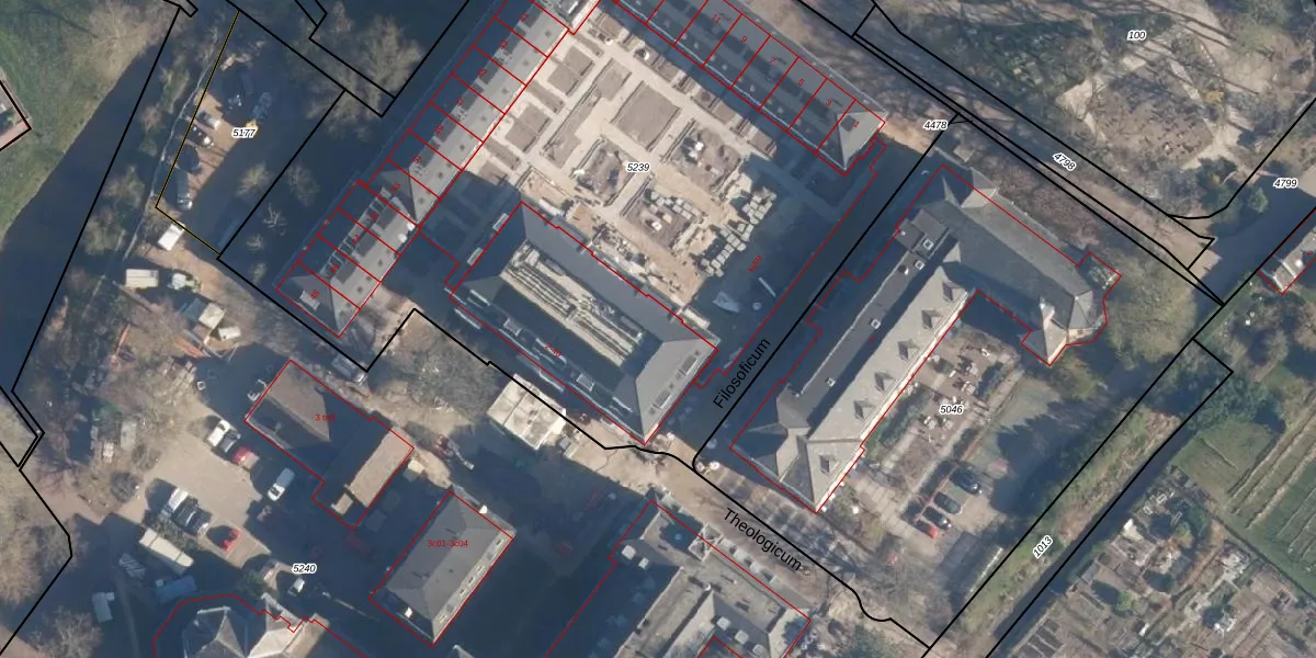 Het perceel waarop Theologicum 20 staat heeft een oppervlakte van 5445 m². Dit is een zeer groot perceel. De perceeloppervlakte wordt geregistreerd door het Kadaster. Gedetailleerde informatie over de maten van dit perceel kunt u vinden in het rapport Kadastrale kaart met maatvoering van Theologicum 20.