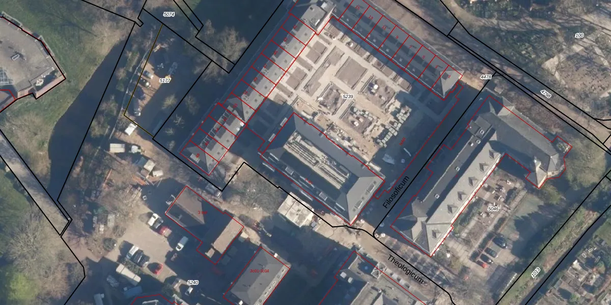 Het perceel waarop Theologicum 32 staat heeft een oppervlakte van 5445 m². Dit is een zeer groot perceel. De perceeloppervlakte wordt geregistreerd door het Kadaster. Gedetailleerde informatie over de maten van dit perceel kunt u vinden in het rapport Kadastrale kaart met maatvoering van Theologicum 32.