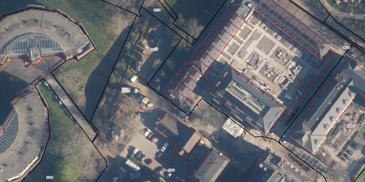 Het perceel waarop Theologicum 46 staat heeft een oppervlakte van 5445 m². Dit is een zeer groot perceel. De perceeloppervlakte wordt geregistreerd door het Kadaster. Gedetailleerde informatie over de maten van dit perceel kunt u vinden in het rapport Kadastrale kaart met maatvoering van Theologicum 46.