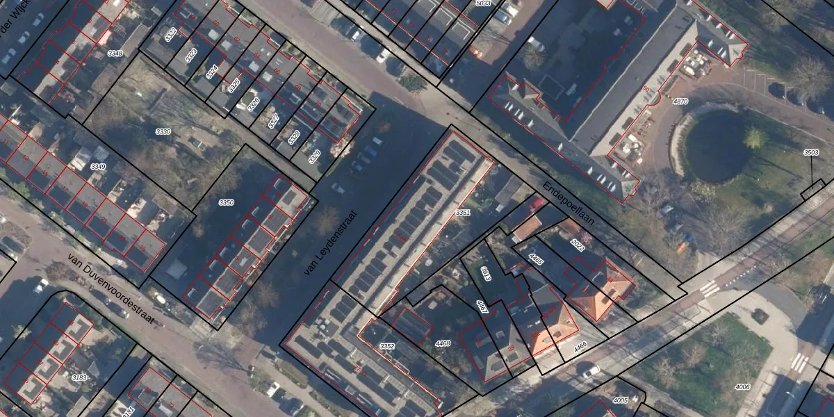 Het perceel waarop van Leydenstraat 22 staat heeft een oppervlakte van 967 m². Dit is een groot perceel. De perceeloppervlakte wordt geregistreerd door het Kadaster. Gedetailleerde informatie over de maten van dit perceel kunt u vinden in het rapport Kadastrale kaart met maatvoering van van Leydenstraat 22.
