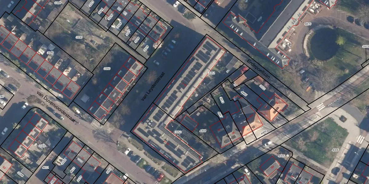 Het perceel waarop van Leydenstraat 38 staat heeft een oppervlakte van 967 m². Dit is een groot perceel. De perceeloppervlakte wordt geregistreerd door het Kadaster. Gedetailleerde informatie over de maten van dit perceel kunt u vinden in het rapport Kadastrale kaart met maatvoering van van Leydenstraat 38.