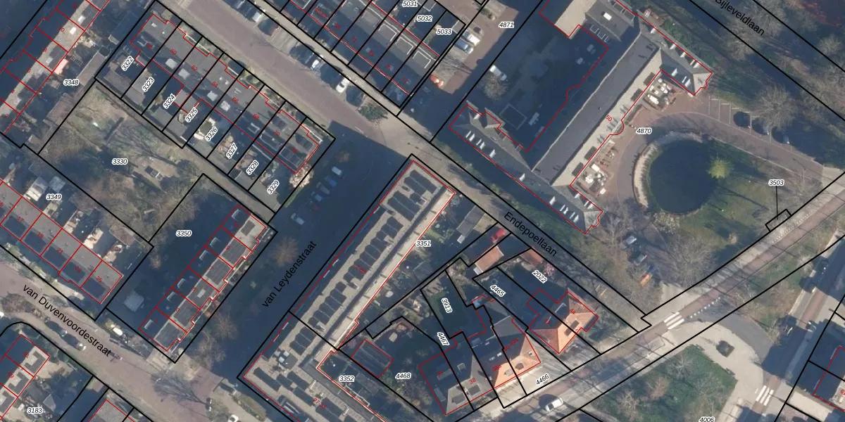 Het perceel waarop van Leydenstraat 46 staat heeft een oppervlakte van 967 m². Dit is een groot perceel. De perceeloppervlakte wordt geregistreerd door het Kadaster. Gedetailleerde informatie over de maten van dit perceel kunt u vinden in het rapport Kadastrale kaart met maatvoering van van Leydenstraat 46.