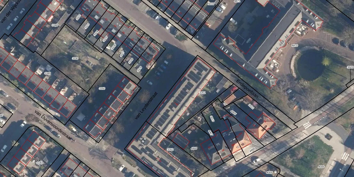 van Leydenstraat 54 is gelegen op kadastraal perceel WMD01D3351. Deze kadastrale aanduiding is uniek en wordt gebruikt door het Kadaster om eigendomsrechten en andere zakelijke rechten vast te leggen. Het perceel maakt onderdeel uit van de kadastrale gemeente Warmond.