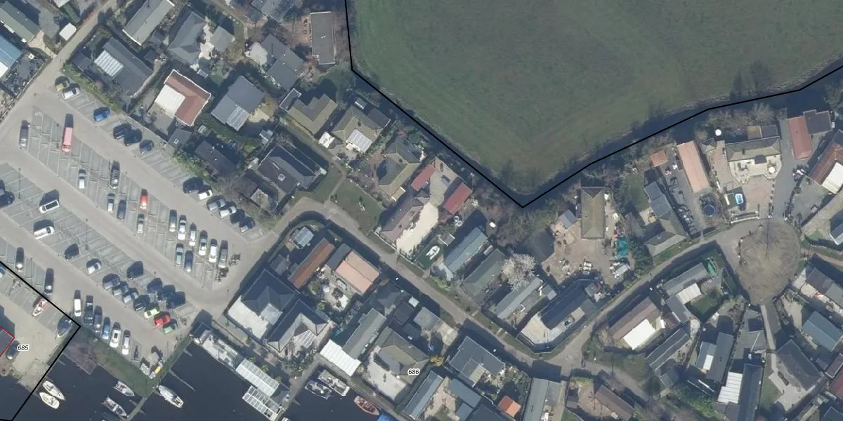 Het perceel waarop het adres ligt is WMD01-E-686. De afkorting 'WMD01' staat voor kadastrale gemeente Warmond. Het perceel is met 4,1 ha relatief groot. Het gemiddelde ligt in de kadastrale gemeente Warmond op 4593,83 m². De grootste perceeloppervlakte in de kadastrale gemeente is 1,31 km². De kleinste oppervlakte bedraagt 0 m². Er zijn 110 adressen aanwezig op het perceel. De laatste wijziging in het de Basisregistratie Kadaster (BRK) was op 30-05-2023.