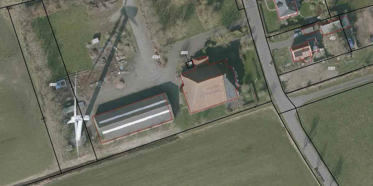 Het perceel waarop Buorren 2 staat heeft een oppervlakte van 8392 m². Dit is een zeer groot perceel. De perceeloppervlakte wordt geregistreerd door het Kadaster. Gedetailleerde informatie over de maten van dit perceel kunt u vinden in het rapport Kadastrale kaart met maatvoering van Buorren 2.
