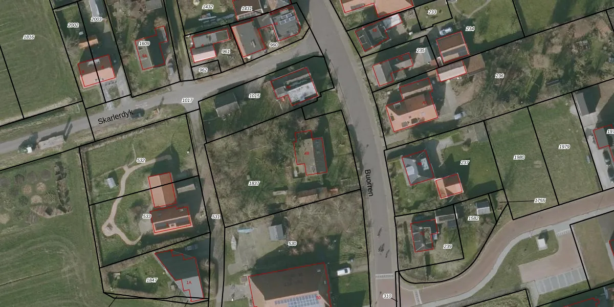 Het perceel waarop Buorren 48 staat heeft een oppervlakte van 1363 m². Dit is een zeer groot perceel. De perceeloppervlakte wordt geregistreerd door het Kadaster. Gedetailleerde informatie over de maten van dit perceel kunt u vinden in het rapport Kadastrale kaart met maatvoering van Buorren 48.