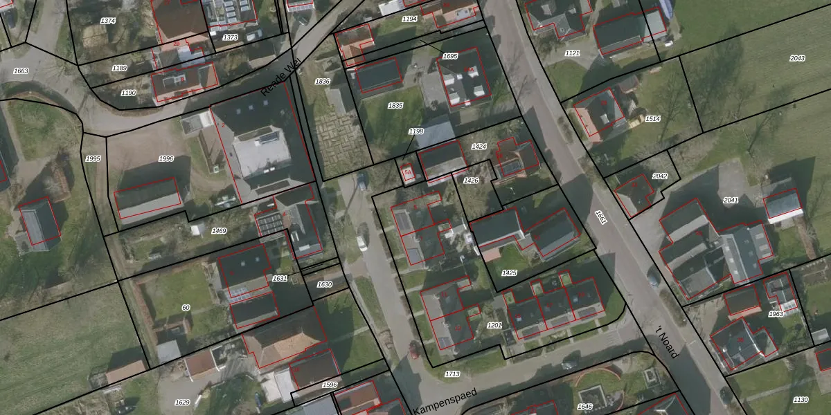 Het perceel waarop Kampenspaed 5 staat heeft een oppervlakte van 1345 m². Dit is een zeer groot perceel. De perceeloppervlakte wordt geregistreerd door het Kadaster. Gedetailleerde informatie over de maten van dit perceel kunt u vinden in het rapport Kadastrale kaart met maatvoering van Kampenspaed 5.