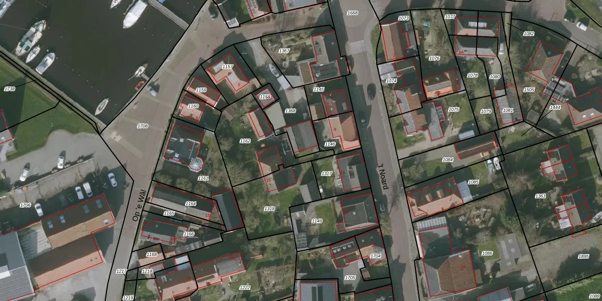 Het perceel waarop Op 'e Wâl 1 staat heeft een oppervlakte van 410 m². Dit is een groot perceel. De perceeloppervlakte wordt geregistreerd door het Kadaster. Gedetailleerde informatie over de maten van dit perceel kunt u vinden in het rapport Kadastrale kaart met maatvoering van Op 'e Wâl 1.