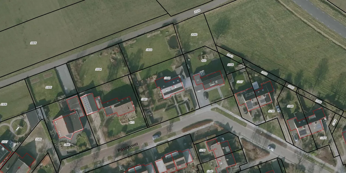 Het perceel waarop Pastorywei 5 staat heeft een oppervlakte van 1041 m². Dit is een zeer groot perceel. De perceeloppervlakte wordt geregistreerd door het Kadaster. Gedetailleerde informatie over de maten van dit perceel kunt u vinden in het rapport Kadastrale kaart met maatvoering van Pastorywei 5.