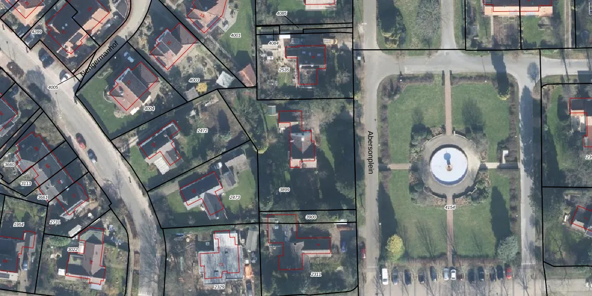 Het perceel waarop Abersonplein 7 staat heeft een oppervlakte van 1385 m². Dit is een zeer groot perceel. De perceeloppervlakte wordt geregistreerd door het Kadaster. Gedetailleerde informatie over de maten van dit perceel kunt u vinden in het rapport Kadastrale kaart met maatvoering van Abersonplein 7.