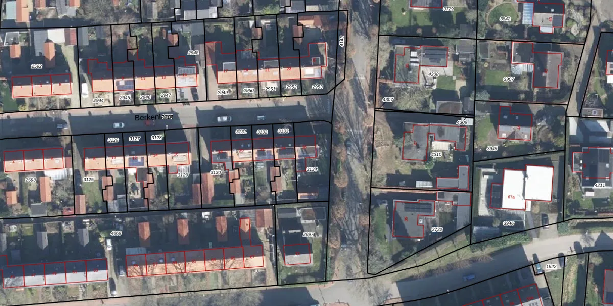 Gebruik de zoekbalk of klik op een perceel voor informatie over de adressen binnen dit perceel.
