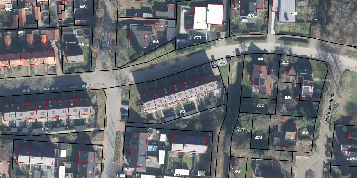 Het perceel waarop Bieshorstlaan 52 staat heeft een oppervlakte van 1320 m². Dit is een zeer groot perceel. De perceeloppervlakte wordt geregistreerd door het Kadaster. Gedetailleerde informatie over de maten van dit perceel kunt u vinden in het rapport Kadastrale kaart met maatvoering van Bieshorstlaan 52.