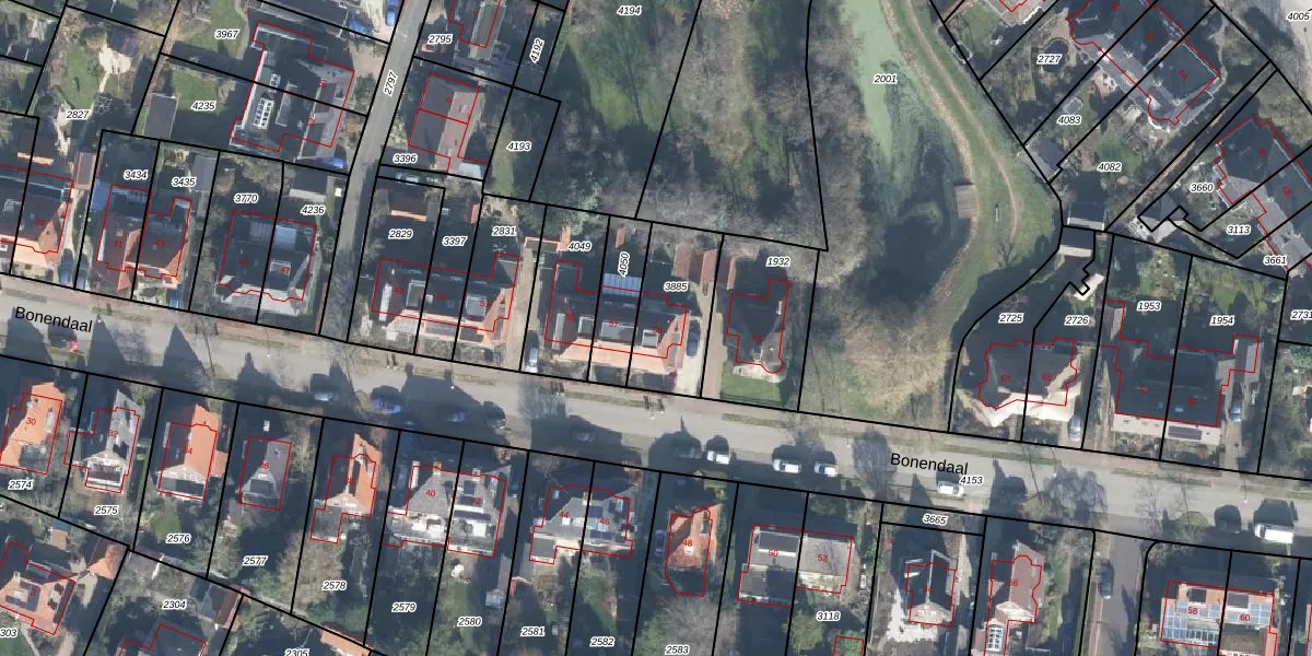 Het perceel waarop Bonendaal 59 staat heeft een oppervlakte van 280 m². Dit is een middelgroot perceel. De perceeloppervlakte wordt geregistreerd door het Kadaster. Gedetailleerde informatie over de maten van dit perceel kunt u vinden in het rapport Kadastrale kaart met maatvoering van Bonendaal 59.
