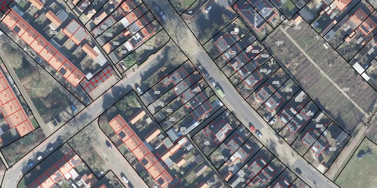 Gebruik de zoekbalk of klik op een perceel voor informatie over de adressen binnen dit perceel.