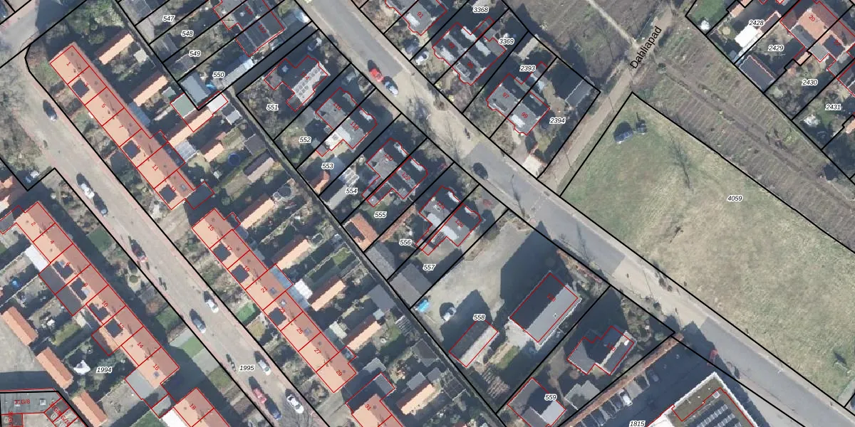 Gebruik de zoekbalk of klik op een perceel voor informatie over de adressen binnen dit perceel.