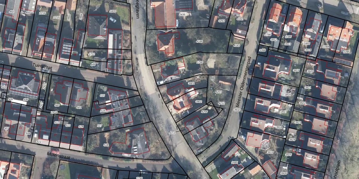 Gebruik de zoekbalk of klik op een perceel voor informatie over de adressen binnen dit perceel.