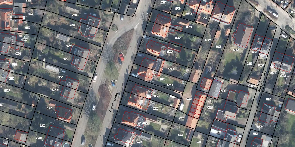 Gerstekamp 9 is gelegen op kadastraal perceel WVD00I3333. Deze kadastrale aanduiding is uniek en wordt gebruikt door het Kadaster om eigendomsrechten en andere zakelijke rechten vast te leggen. Het perceel maakt onderdeel uit van de kadastrale gemeente Warnsveld.