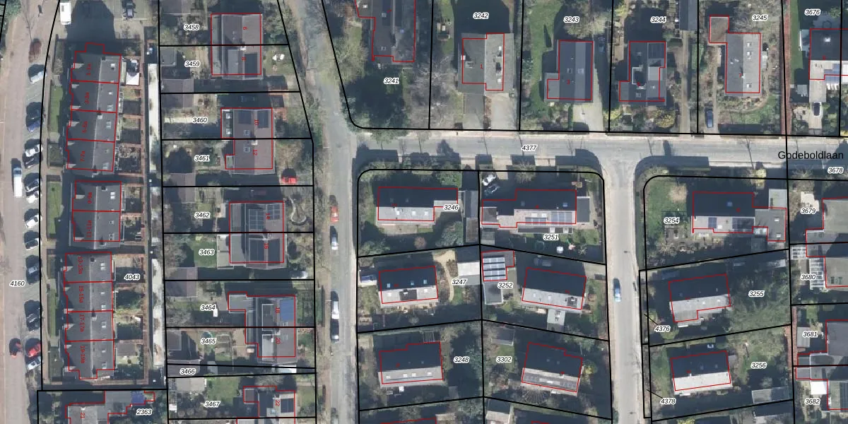 Het perceel waarop Godeboldlaan 2 staat heeft een oppervlakte van 534 m². Dit is een groot perceel. De perceeloppervlakte wordt geregistreerd door het Kadaster. Gedetailleerde informatie over de maten van dit perceel kunt u vinden in het rapport Kadastrale kaart met maatvoering van Godeboldlaan 2.