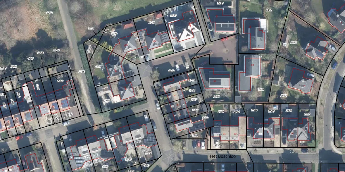 Het Boschloo 1 is gelegen op kadastraal perceel WVD00L1755. Deze kadastrale aanduiding is uniek en wordt gebruikt door het Kadaster om eigendomsrechten en andere zakelijke rechten vast te leggen. Het perceel maakt onderdeel uit van de kadastrale gemeente Warnsveld.