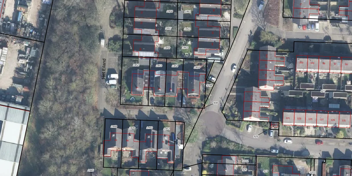 Het perceel waarop Het Eiland 61 staat heeft een oppervlakte van 263 m². Dit is een middelgroot perceel. De perceeloppervlakte wordt geregistreerd door het Kadaster. Gedetailleerde informatie over de maten van dit perceel kunt u vinden in het rapport Kadastrale kaart met maatvoering van Het Eiland 61.