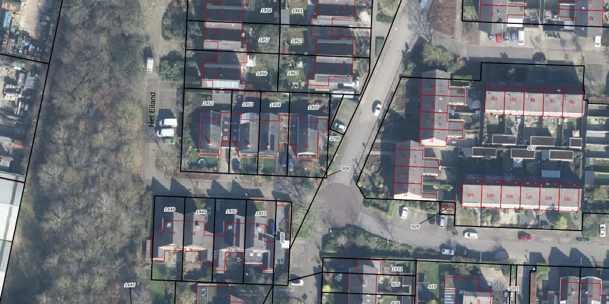 Het perceel waarop Het Eiland 63 staat heeft een oppervlakte van 364 m². Dit is een groot perceel. De perceeloppervlakte wordt geregistreerd door het Kadaster. Gedetailleerde informatie over de maten van dit perceel kunt u vinden in het rapport Kadastrale kaart met maatvoering van Het Eiland 63.