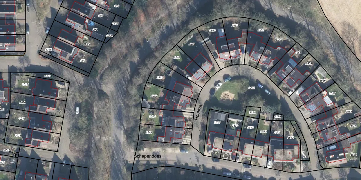 Gebruik de zoekbalk of klik op een perceel voor informatie over de adressen binnen dit perceel.