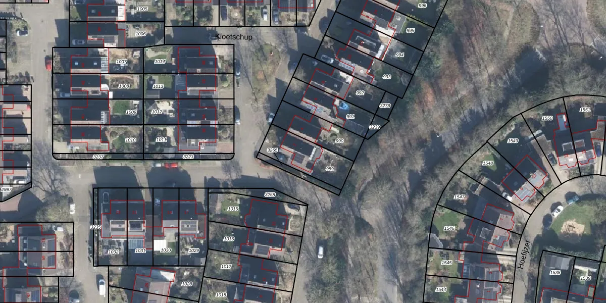 Het perceel waarop Kloetschup 2 staat heeft een oppervlakte van 309 m². Dit is een groot perceel. De perceeloppervlakte wordt geregistreerd door het Kadaster. Gedetailleerde informatie over de maten van dit perceel kunt u vinden in het rapport Kadastrale kaart met maatvoering van Kloetschup 2.