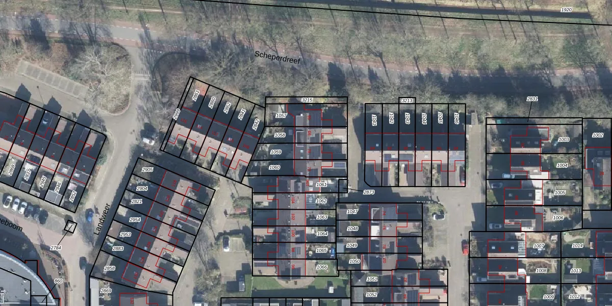 Gebruik de zoekbalk of klik op een perceel voor informatie over de adressen binnen dit perceel.