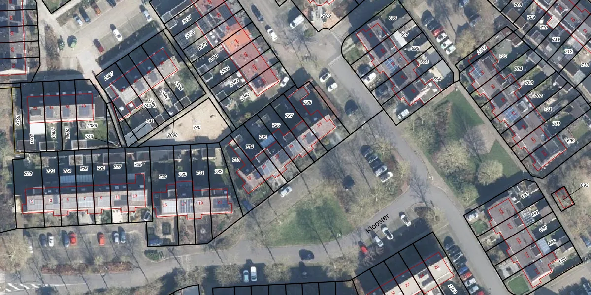 Het perceel waarop Klooster 29 staat heeft een oppervlakte van 141 m². Dit is een middelgroot perceel. De perceeloppervlakte wordt geregistreerd door het Kadaster. Gedetailleerde informatie over de maten van dit perceel kunt u vinden in het rapport Kadastrale kaart met maatvoering van Klooster 29.