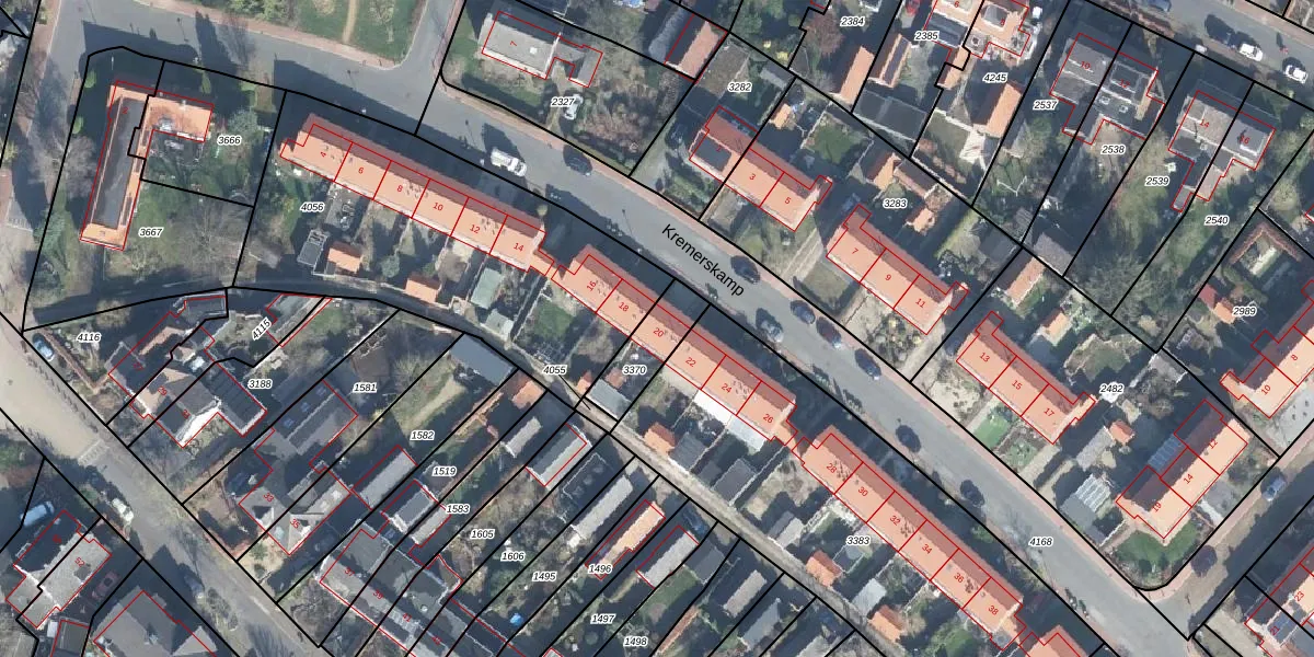 Het perceel waarop Kremerskamp 20 staat heeft een oppervlakte van 147 m². Dit is een middelgroot perceel. De perceeloppervlakte wordt geregistreerd door het Kadaster. Gedetailleerde informatie over de maten van dit perceel kunt u vinden in het rapport Kadastrale kaart met maatvoering van Kremerskamp 20.