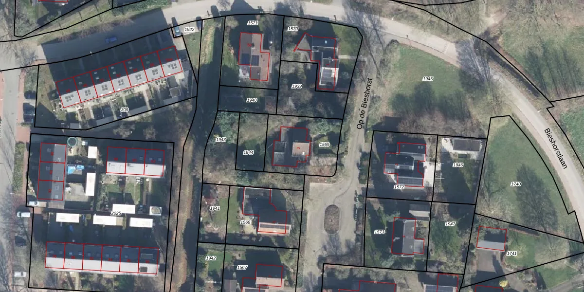 Het perceel waarop Op de Bieshorst 3 staat heeft een oppervlakte van 500 m². Dit is een groot perceel. De perceeloppervlakte wordt geregistreerd door het Kadaster. Gedetailleerde informatie over de maten van dit perceel kunt u vinden in het rapport Kadastrale kaart met maatvoering van Op de Bieshorst 3.