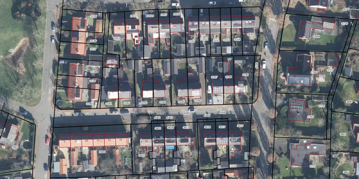Het perceel waarop Prunuslaan 9 staat heeft een oppervlakte van 262 m². Dit is een middelgroot perceel. De perceeloppervlakte wordt geregistreerd door het Kadaster. Gedetailleerde informatie over de maten van dit perceel kunt u vinden in het rapport Kadastrale kaart met maatvoering van Prunuslaan 9.