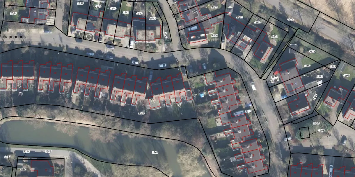Het perceel waarop Schapendoes 30 staat heeft een oppervlakte van 5245 m². Dit is een zeer groot perceel. De perceeloppervlakte wordt geregistreerd door het Kadaster. Gedetailleerde informatie over de maten van dit perceel kunt u vinden in het rapport Kadastrale kaart met maatvoering van Schapendoes 30.