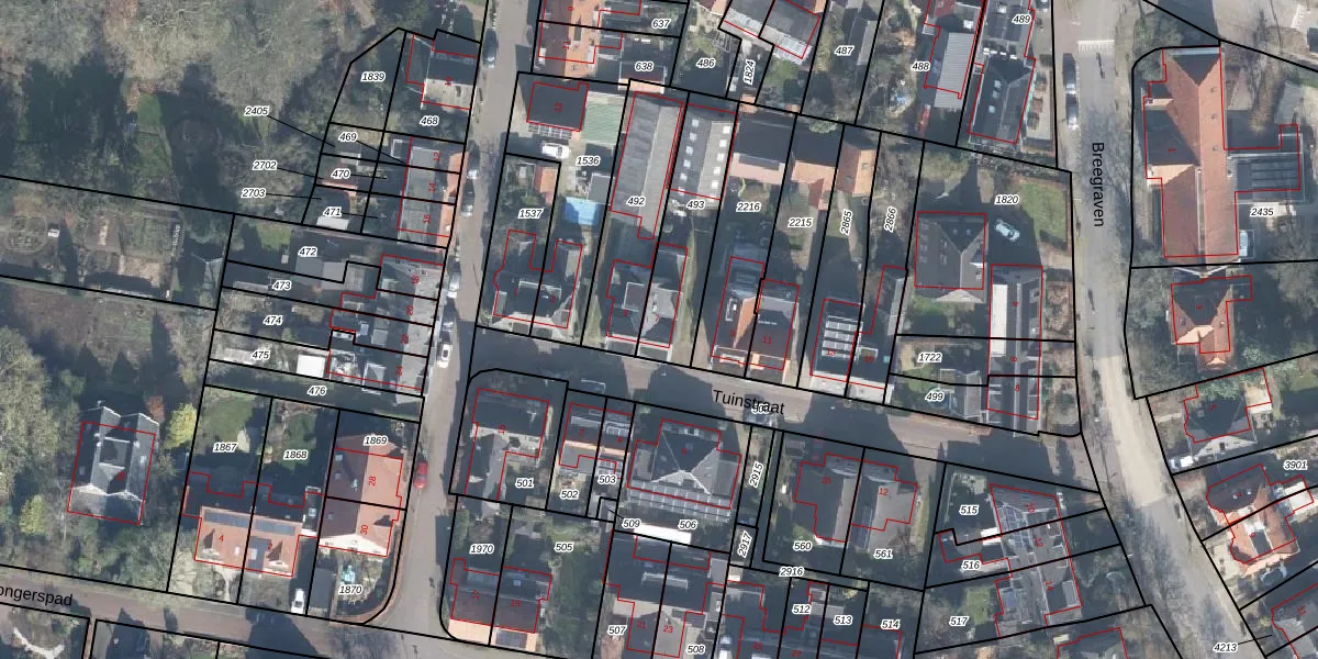 Gebruik de zoekbalk of klik op een perceel voor informatie over de adressen binnen dit perceel.