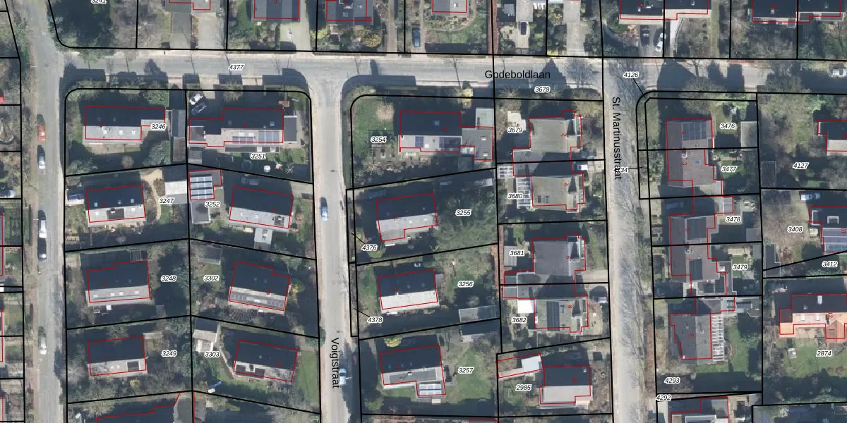 Het perceel waarop Voigtstraat 1 staat heeft een oppervlakte van 606 m². Dit is een groot perceel. De perceeloppervlakte wordt geregistreerd door het Kadaster. Gedetailleerde informatie over de maten van dit perceel kunt u vinden in het rapport Kadastrale kaart met maatvoering van Voigtstraat 1.
