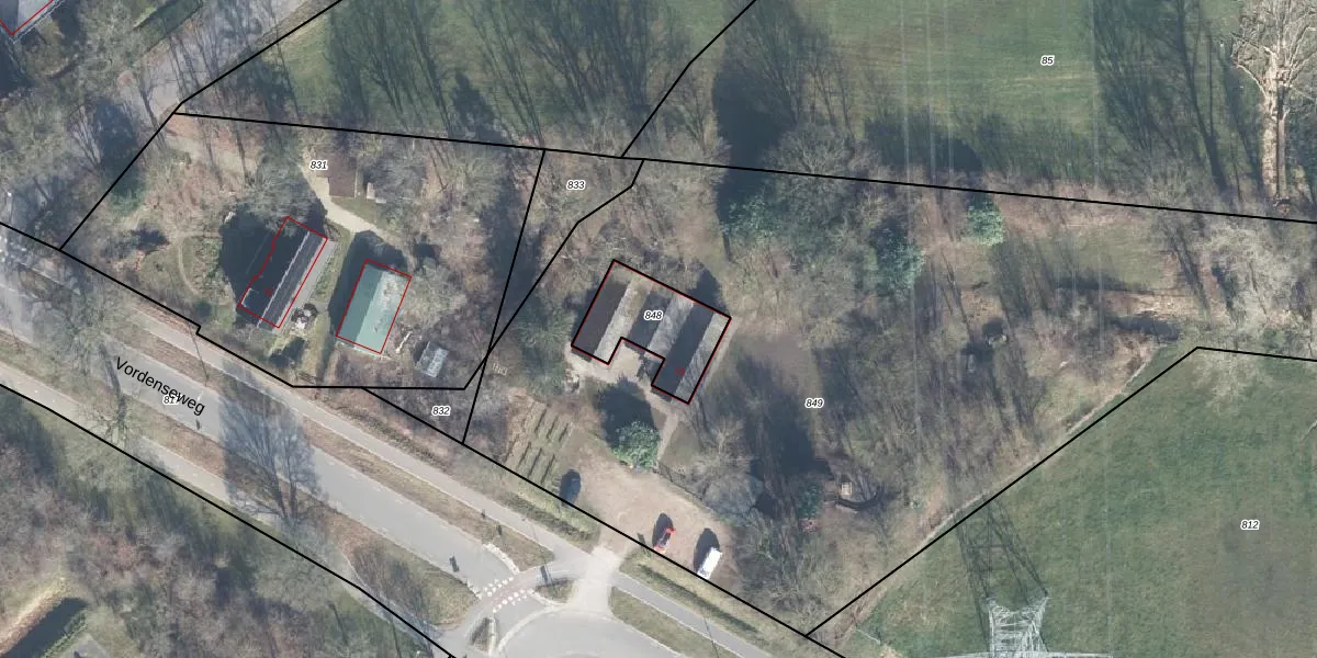 Vordenseweg 13 is gelegen op kadastraal perceel WVD00M848. Deze kadastrale aanduiding is uniek en wordt gebruikt door het Kadaster om eigendomsrechten en andere zakelijke rechten vast te leggen. Het perceel maakt onderdeel uit van de kadastrale gemeente Warnsveld.