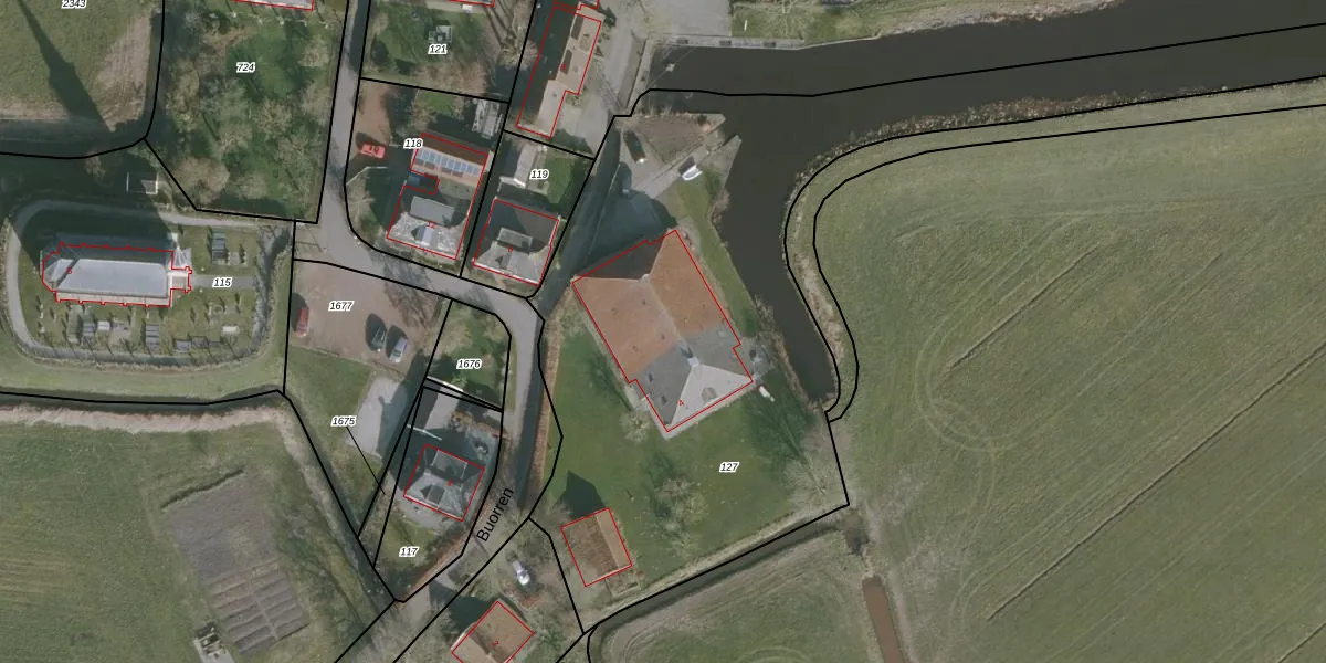 Het perceel waarop Buorren 4 staat heeft een oppervlakte van 3870 m². Dit is een zeer groot perceel. De perceeloppervlakte wordt geregistreerd door het Kadaster. Gedetailleerde informatie over de maten van dit perceel kunt u vinden in het rapport Kadastrale kaart met maatvoering van Buorren 4.