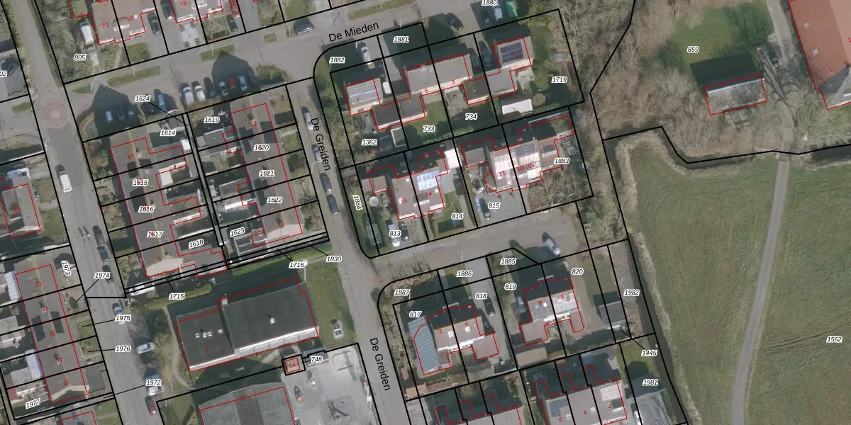 De Greiden 14 is gelegen op kadastraal perceel WRG04C814. Deze kadastrale aanduiding is uniek en wordt gebruikt door het Kadaster om eigendomsrechten en andere zakelijke rechten vast te leggen. Het perceel maakt onderdeel uit van de kadastrale gemeente Warrega.