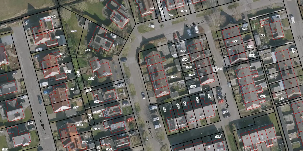 Het perceel waarop De Mieden 17 staat heeft een oppervlakte van 960 m². Dit is een groot perceel. De perceeloppervlakte wordt geregistreerd door het Kadaster. Gedetailleerde informatie over de maten van dit perceel kunt u vinden in het rapport Kadastrale kaart met maatvoering van De Mieden 17.
