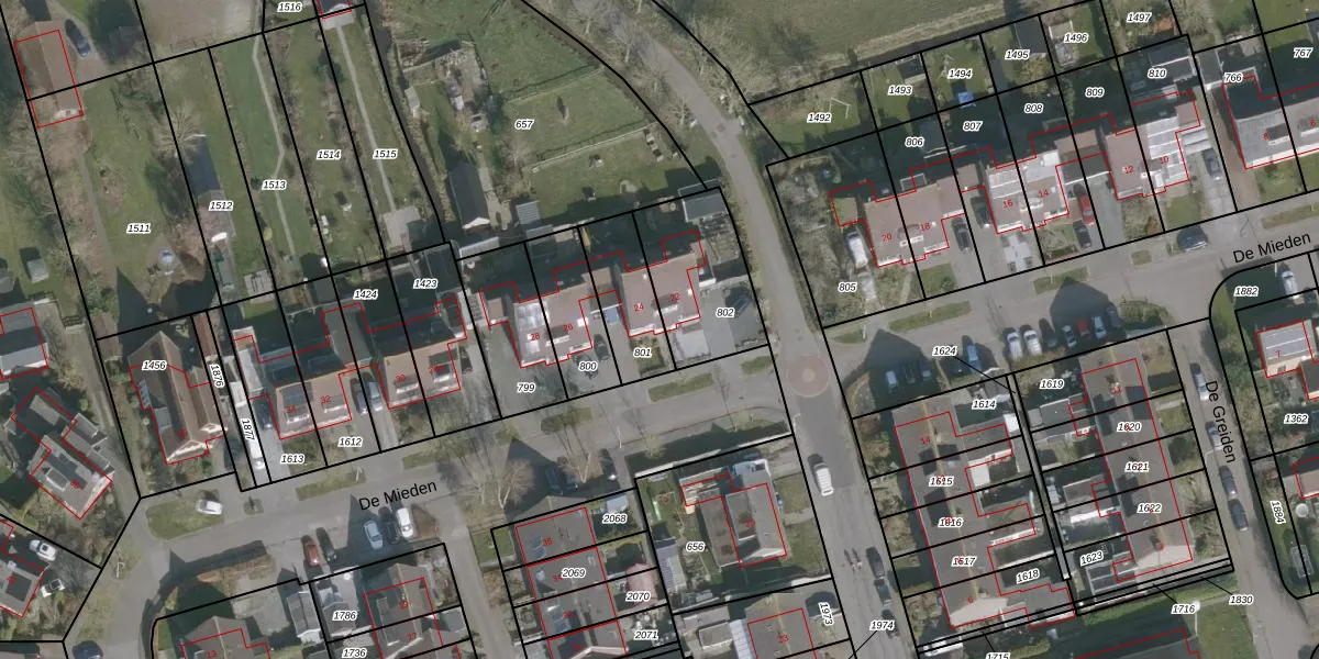 De Mieden 24 is gelegen op kadastraal perceel WRG04C801. Deze kadastrale aanduiding is uniek en wordt gebruikt door het Kadaster om eigendomsrechten en andere zakelijke rechten vast te leggen. Het perceel maakt onderdeel uit van de kadastrale gemeente Warrega.