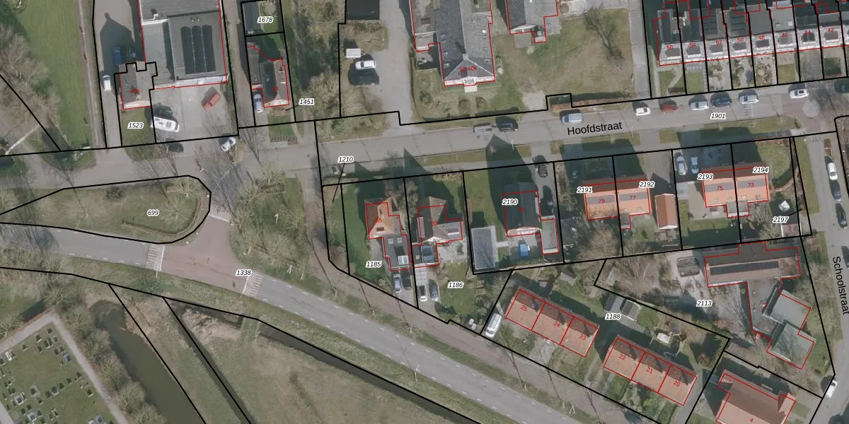 Gebruik de zoekbalk of klik op een perceel voor informatie over de adressen binnen dit perceel.