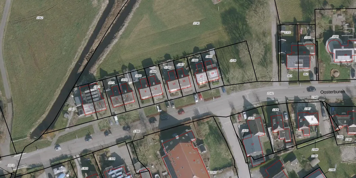 Het perceel waarop Oosterburen 13 staat heeft een oppervlakte van 175 m². Dit is een middelgroot perceel. De perceeloppervlakte wordt geregistreerd door het Kadaster. Gedetailleerde informatie over de maten van dit perceel kunt u vinden in het rapport Kadastrale kaart met maatvoering van Oosterburen 13.