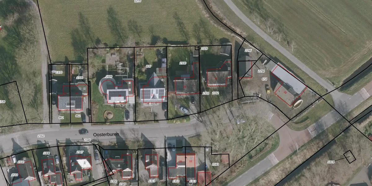 Het perceel waarop Oosterburen 29 staat heeft een oppervlakte van 654 m². Dit is een groot perceel. De perceeloppervlakte wordt geregistreerd door het Kadaster. Gedetailleerde informatie over de maten van dit perceel kunt u vinden in het rapport Kadastrale kaart met maatvoering van Oosterburen 29.