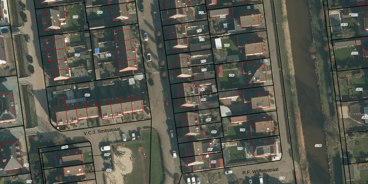 Het adres is gelegen op perceel 643 in de sectie O en de kadastrale gemeente Waspik. De kadastrale aanduiding is aldus WPK01-O-643. Het perceel is 201 m² groot. Dat is kleiner dan de gemiddelde perceeloppervlakte in Waspik, dat op 5076,07 m² ligt. De grootste perceeloppervlakte in de kadastrale gemeente is 21,0 ha. De kleinste oppervlakte bedraagt 1 m². Dit is het enige adres dat aanwezig is op het perceel. De laatste wijziging in het de Basisregistratie Kadaster (BRK) was op 16-05-2006.