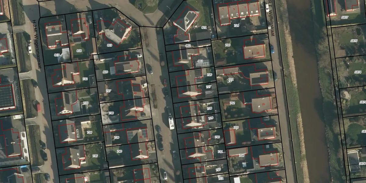 Gebruik de zoekbalk of klik op een perceel voor informatie over de adressen binnen dit perceel.