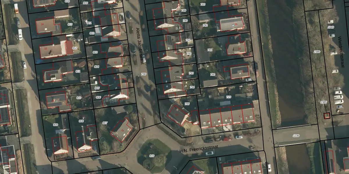 Gebruik de zoekbalk of klik op een perceel voor informatie over de adressen binnen dit perceel.