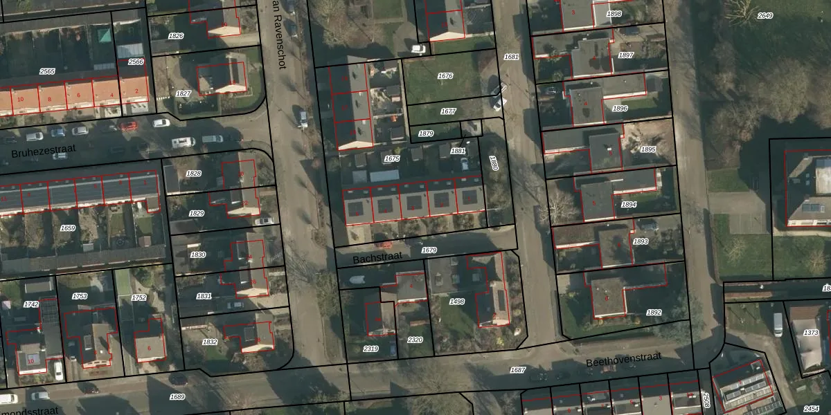 Het perceel waarop Bachstraat 3 staat heeft een oppervlakte van 1299 m². Dit is een zeer groot perceel. De perceeloppervlakte wordt geregistreerd door het Kadaster. Gedetailleerde informatie over de maten van dit perceel kunt u vinden in het rapport Kadastrale kaart met maatvoering van Bachstraat 3.