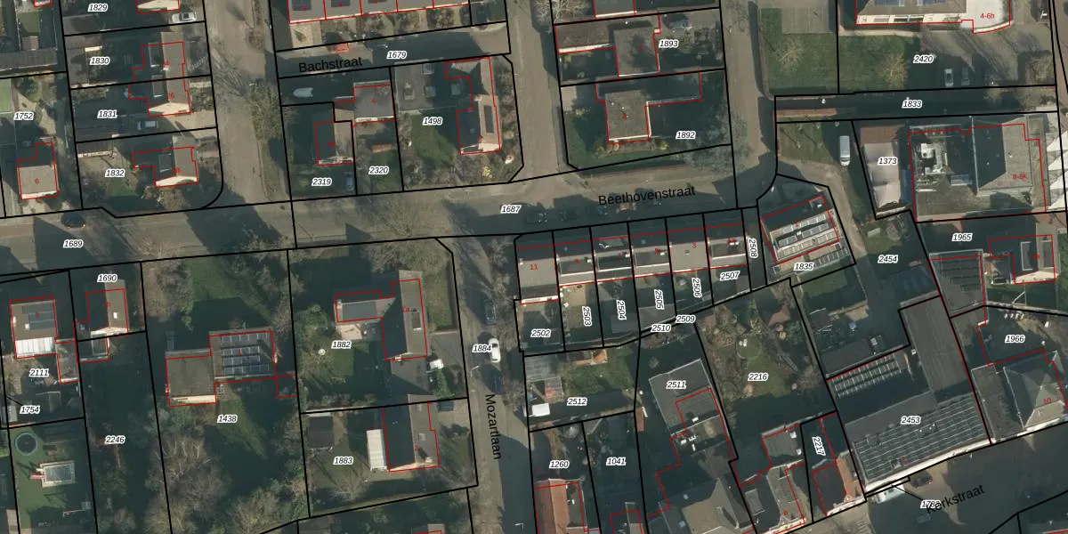 Gebruik de zoekbalk of klik op een perceel voor informatie over de adressen binnen dit perceel.