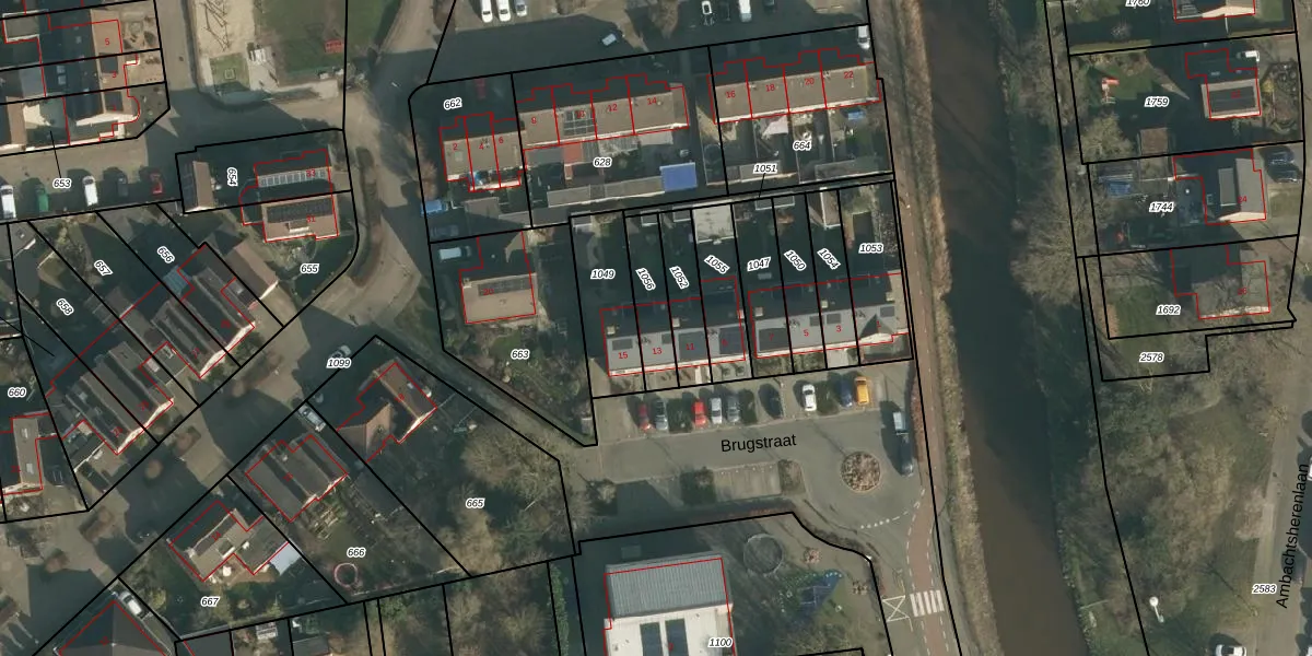 Brugstraat 13 is gelegen op kadastraal perceel WPK01O1056. Deze kadastrale aanduiding is uniek en wordt gebruikt door het Kadaster om eigendomsrechten en andere zakelijke rechten vast te leggen. Het perceel maakt onderdeel uit van de kadastrale gemeente Waspik.